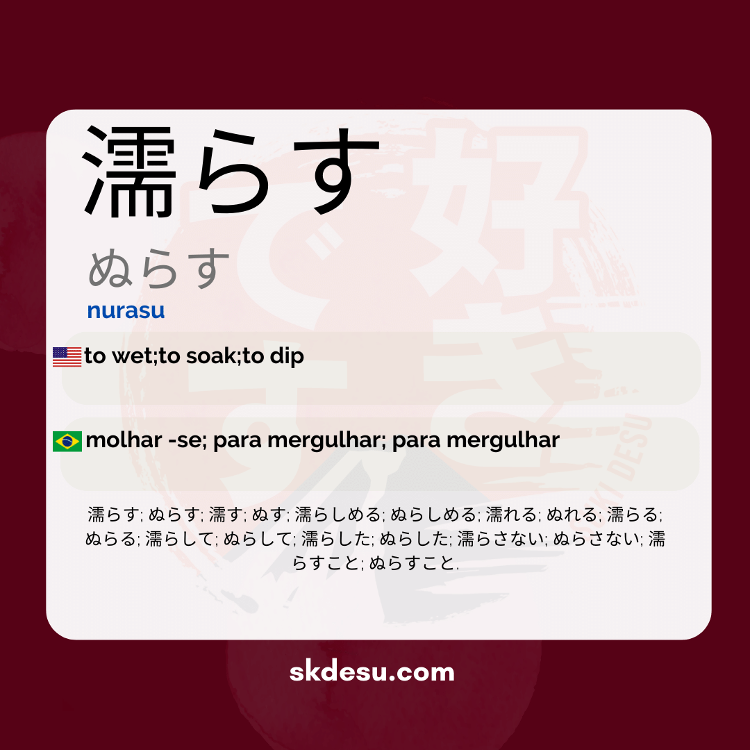 - 濡らして (nurashite) - forme du verbe "mouiller"