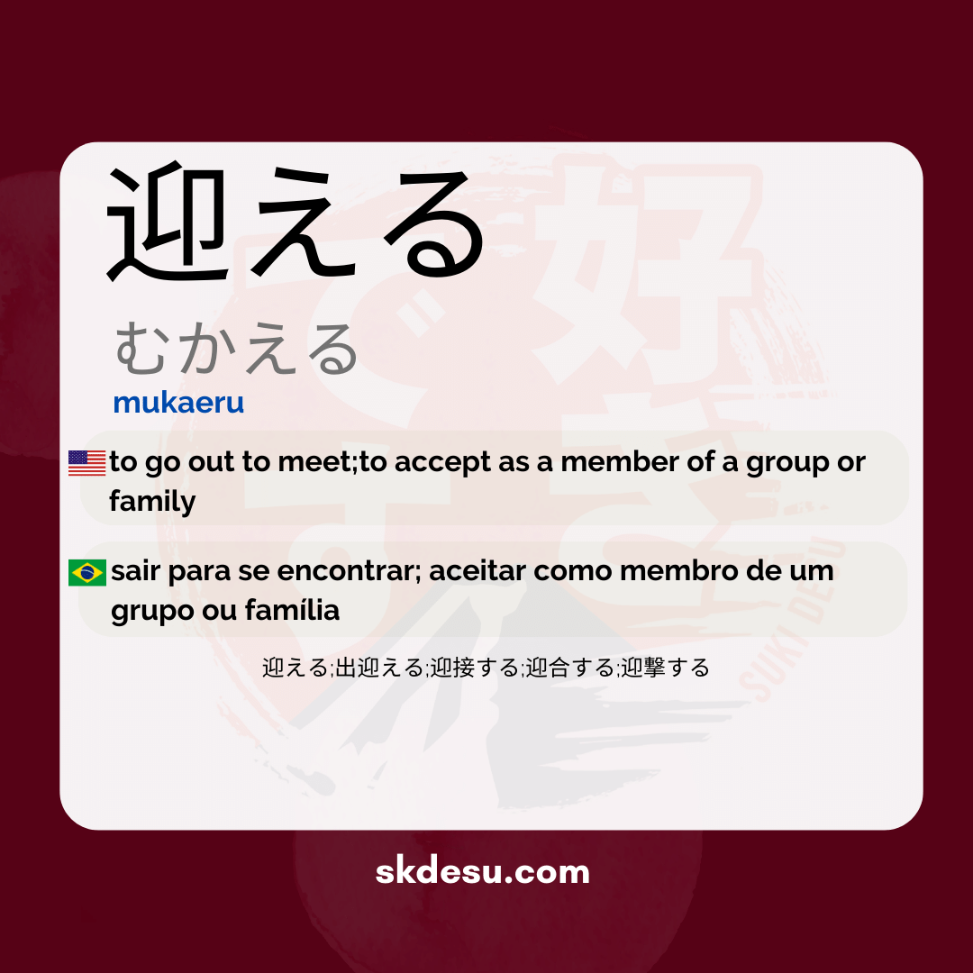 - 迎え (mukae) - คำกริยาที่หมายถึง "ค้นหา" หรือ "รับ" ในภาษาญี่ปุ่น